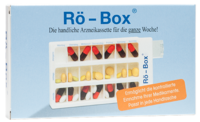 Die Rö-Box ist eine handliche und pflegeleichte PVC-Box mit Klarsicht-Schuber; sie ermöglicht die kontrollierte Einnahme von Medikamenten über den gesamten Zeitraum von einer Woche.